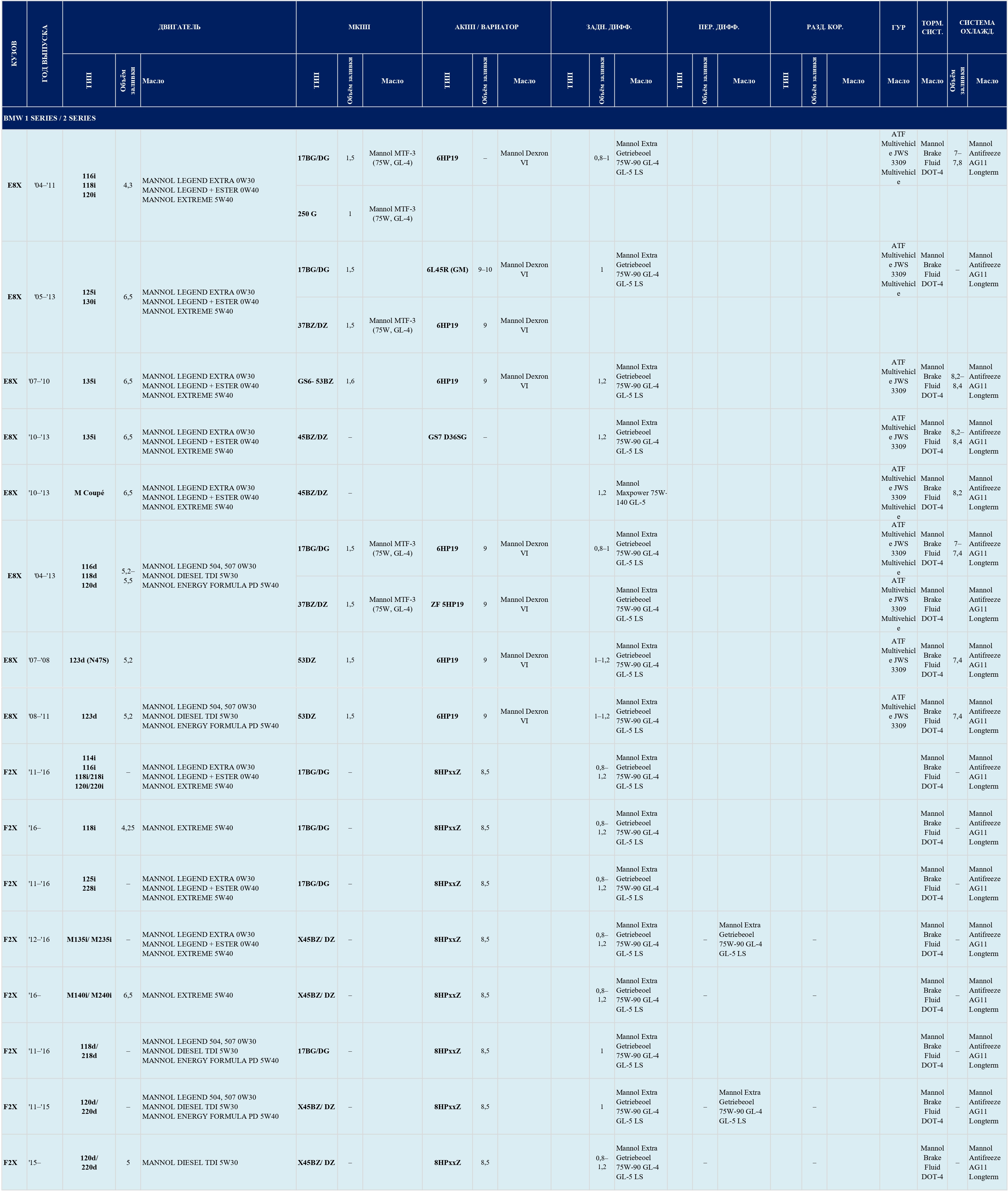Масла для BMW 2 Series