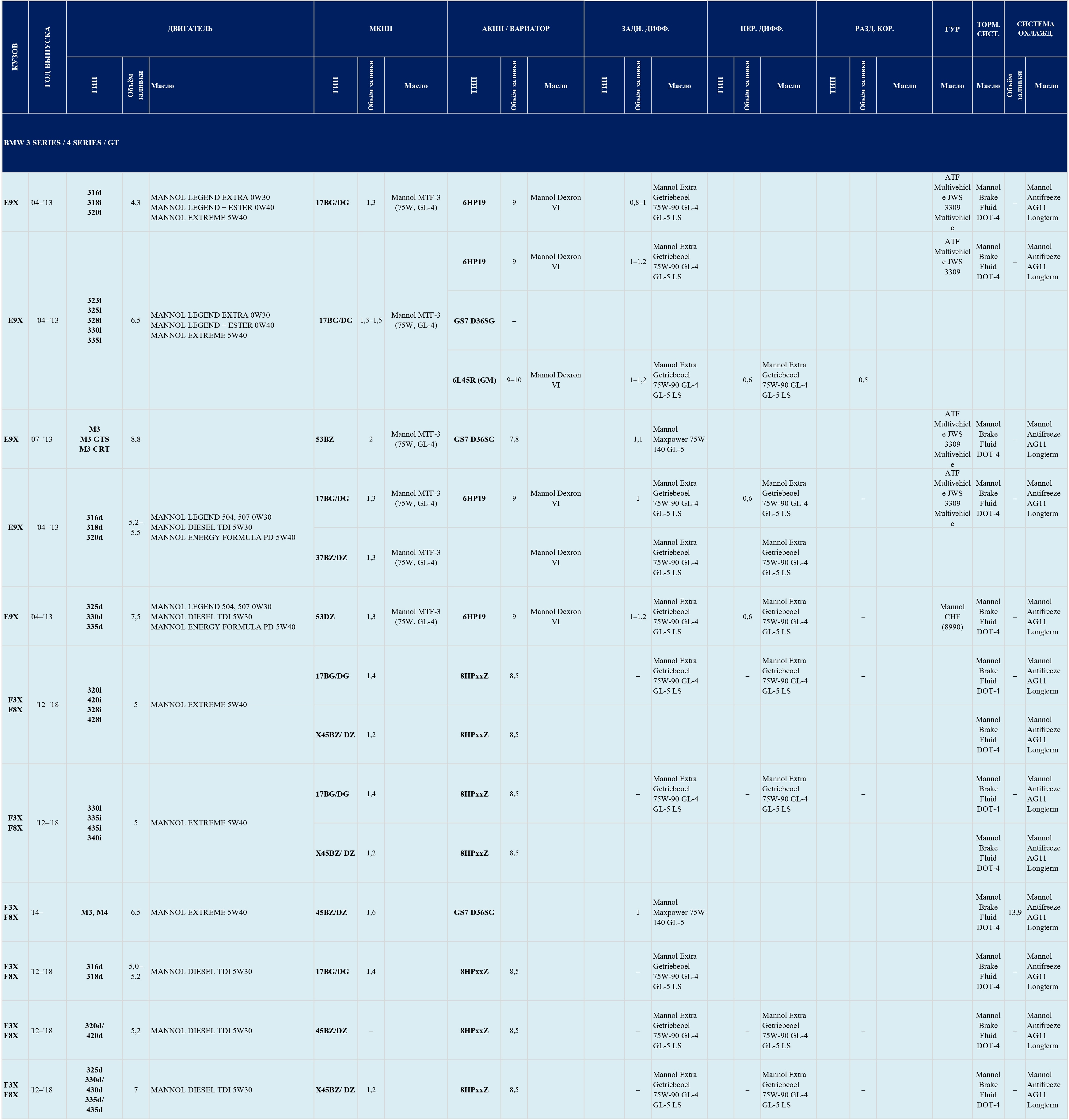 Масла для BMW 3 Series