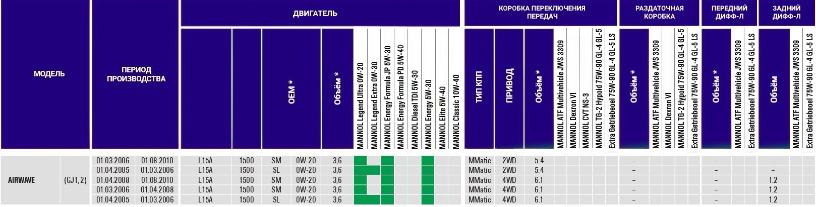 Масла для HONDA AIRWAVE